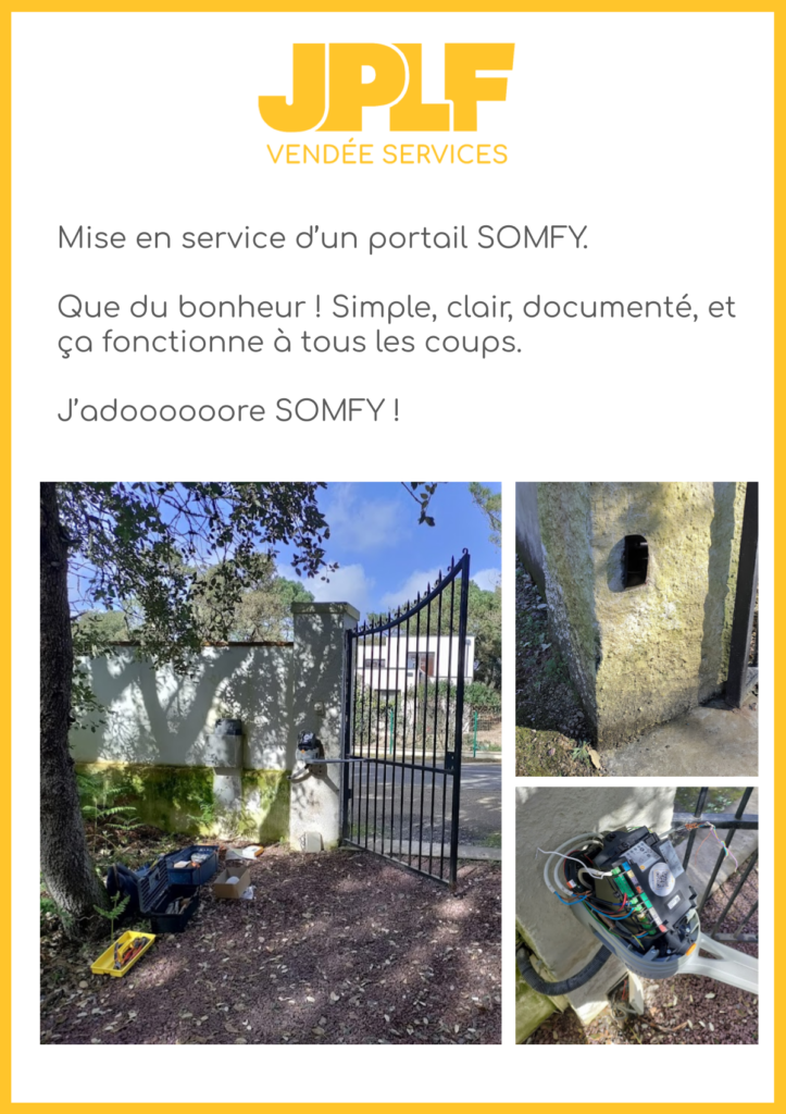 Le client a tenté de remplacer ses vieux moteurs de portail tout seul. Mais voilà, les fils sont rebranchés et … ca ne fonctionne pas. Chez JPLF, on ne juge pas, au contraire, on explique : incompatibilité des anciennes cellules, câblage approximatif, réglages oubliés, butées non installées. Tout est résolu en quelques heures et les nouveaux moteurs font leur travail 🙂